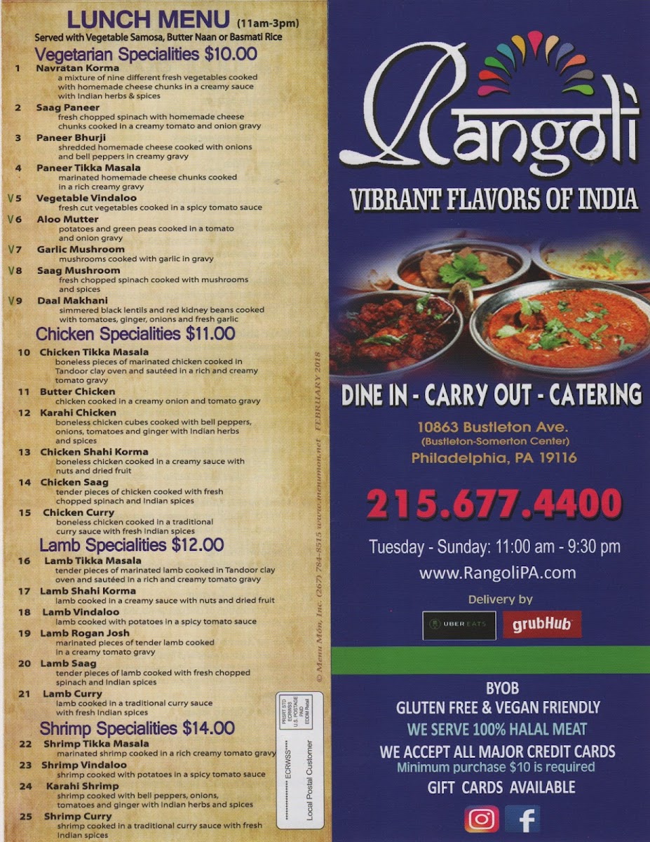 Introducing the menu at Rangoli: Vibrant Flavors Of India, patrons are welcomed to a culinary journey through India’s rich gastronomic landscape. Located at 10863 Bustleton Ave, Philadelphia, this establishment shines with a diverse array of dishes that celebrate traditional flavors.